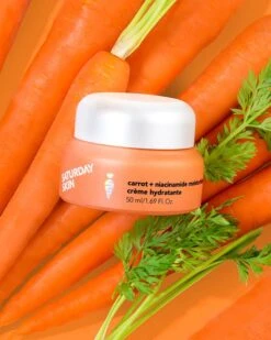 The Saturday Skin Carrot + Niacinamide Moisturizing Cream strengthens and protects with superfood extracts, especially helping to revive dry skin.