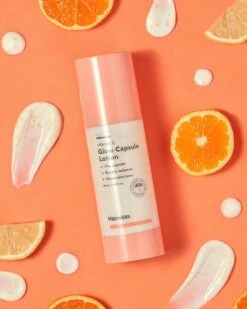 Hanskin’s Vitamin C Glow Capsule Lotion quenches the skin with fast-absorbing hydration as vitamin oil capsules melt on contact to reinforce the moisture barrier and brighten dull, tired skin.
